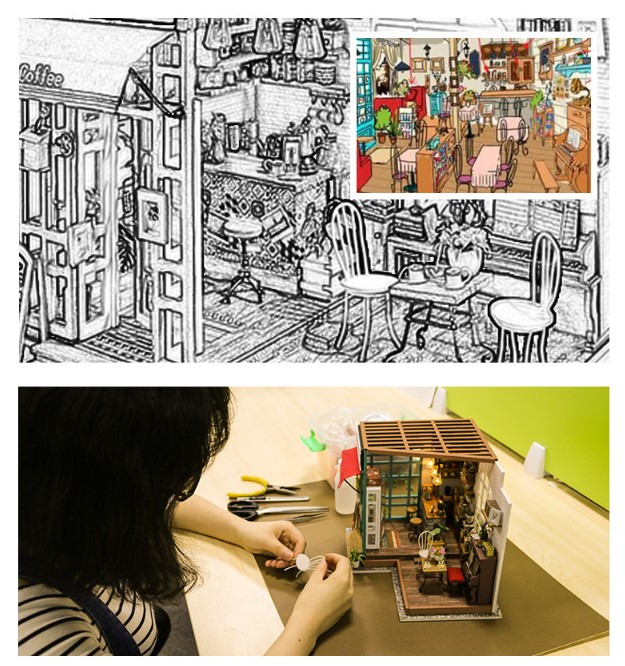 Beautifully designed and filled with amazingly intricate details that warm the heart and fascinate the imagination, this unique model of a homey little coffee shop will bring nothing but joy to any bookshelf or desktop.